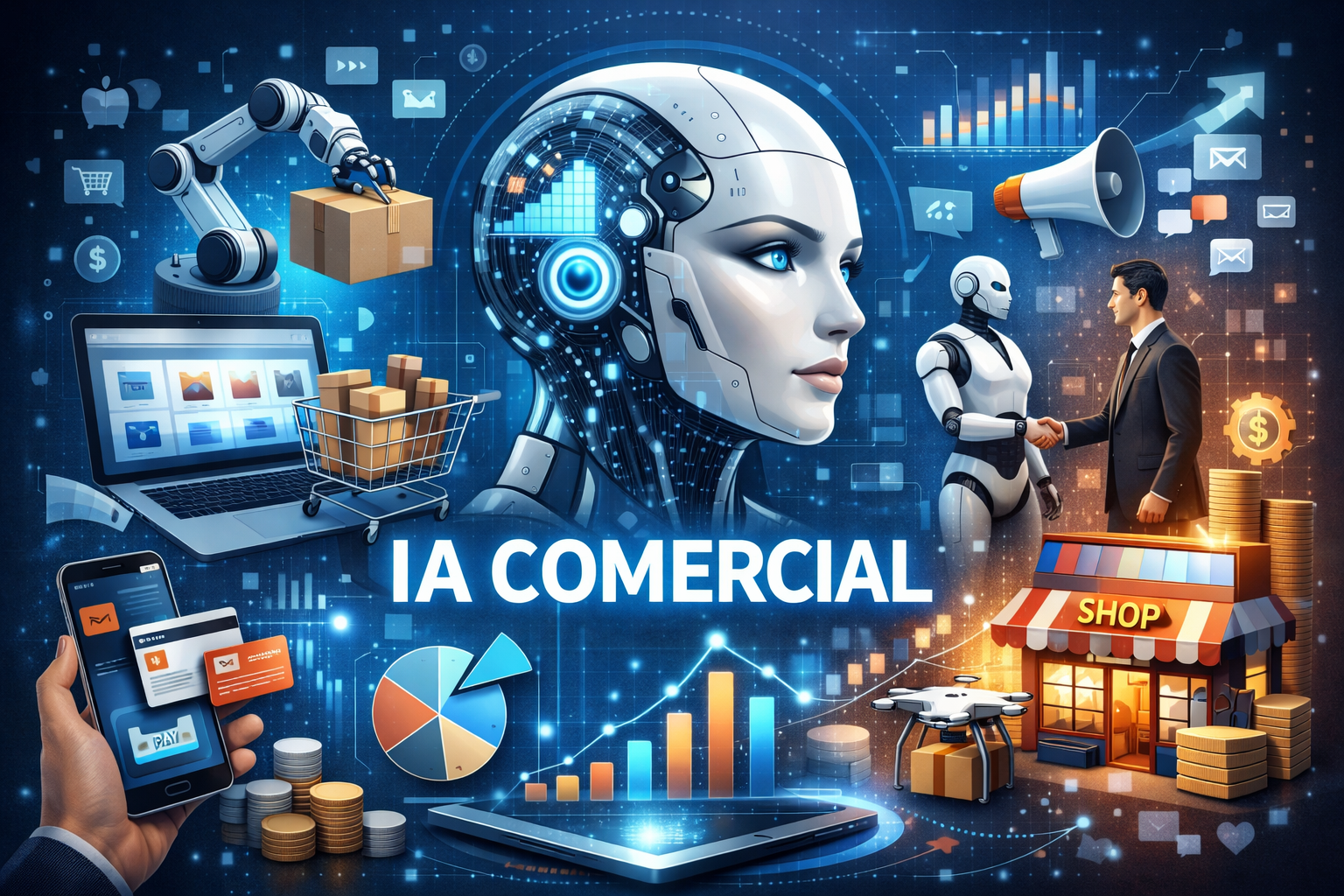 La inteligencia artificial (IA) en el ámbito comercial se ha convertido en una herramienta clave para las empresas, ya que permite mejorar la forma en que venden, analizan datos y se relacionan con los clientes. Gracias a la IA, los negocios pueden predecir comportamientos de compra, automatizar procesos como la atención al cliente y ofrecer productos o servicios más personalizados. Esto no solo aumenta la eficiencia, sino que también mejora la experiencia del consumidor y ayuda a las empresas a ser más competitivas en un mercado cada vez más digital..